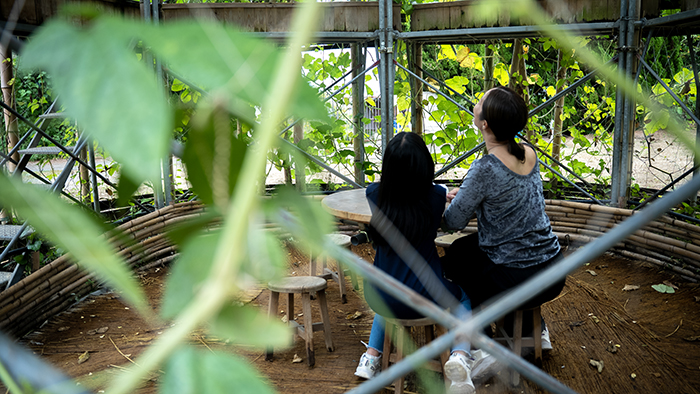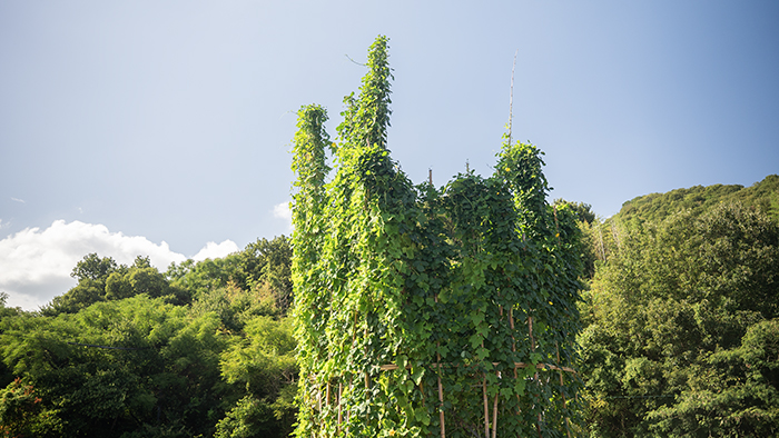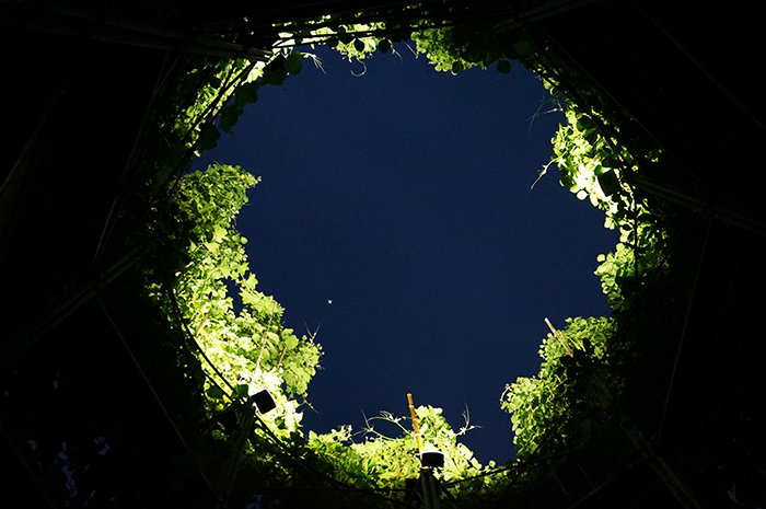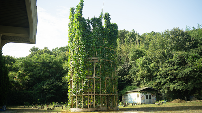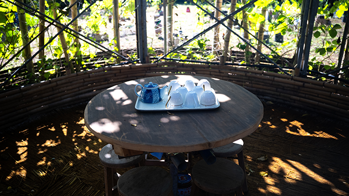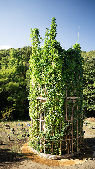 Included: Bamboo structure, tea table, found objects from Former Awashima