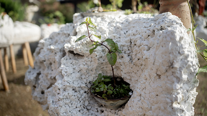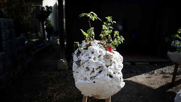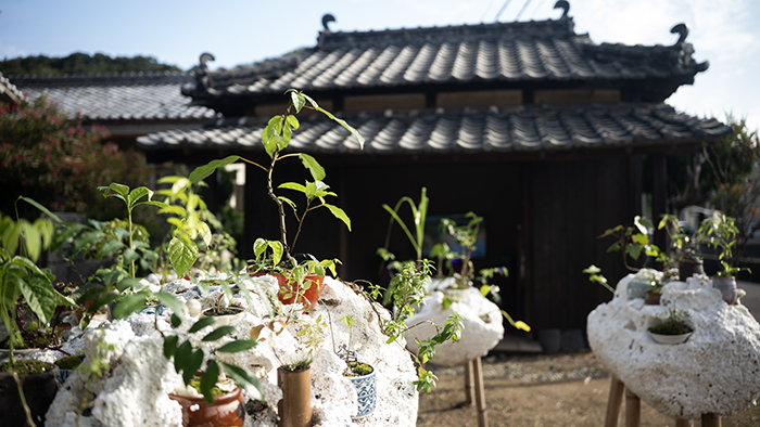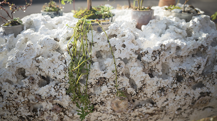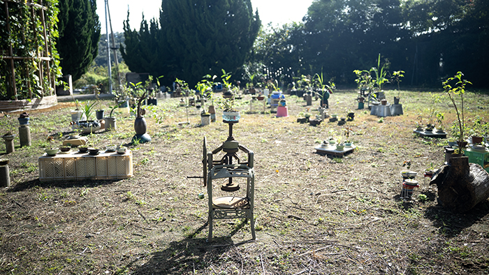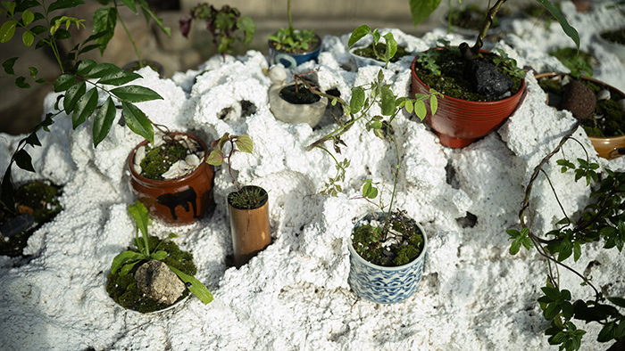 from Awashima elders, found objects, variety of Vietnamese plant bonsais