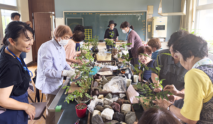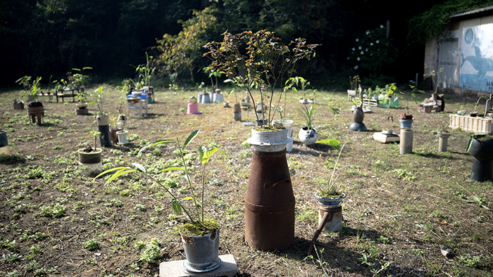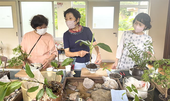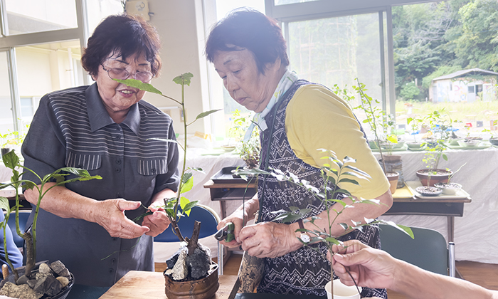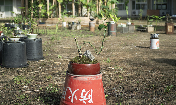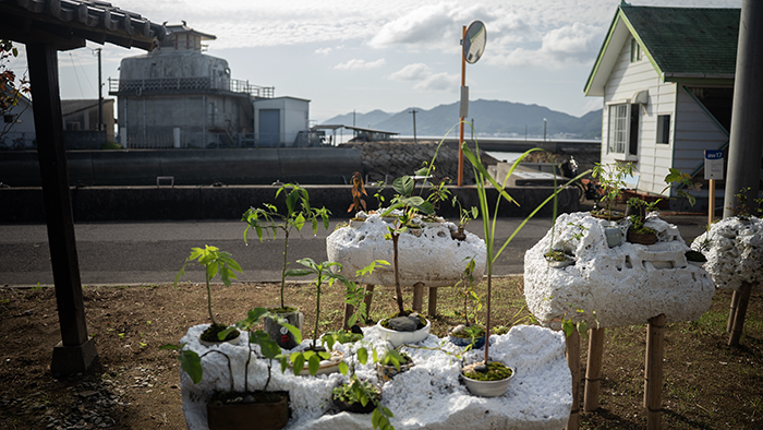 Bonsais made by islanders and volunteers.